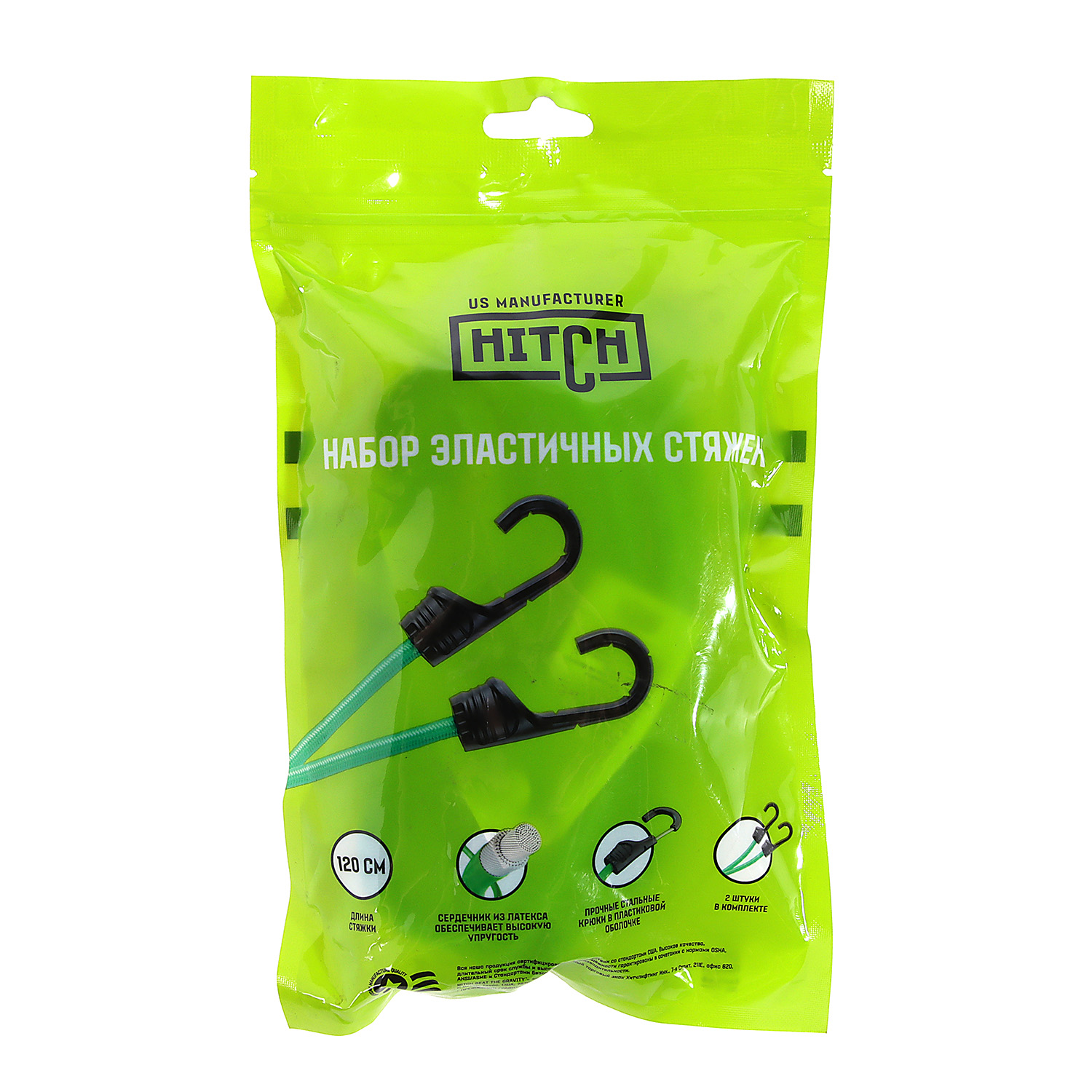 Стяжка эластичная 120см, d8мм, 2шт, резина,латекс, крюк.пласт, сердц.сталь арт.SZ087657 Hitch Regular *1/50