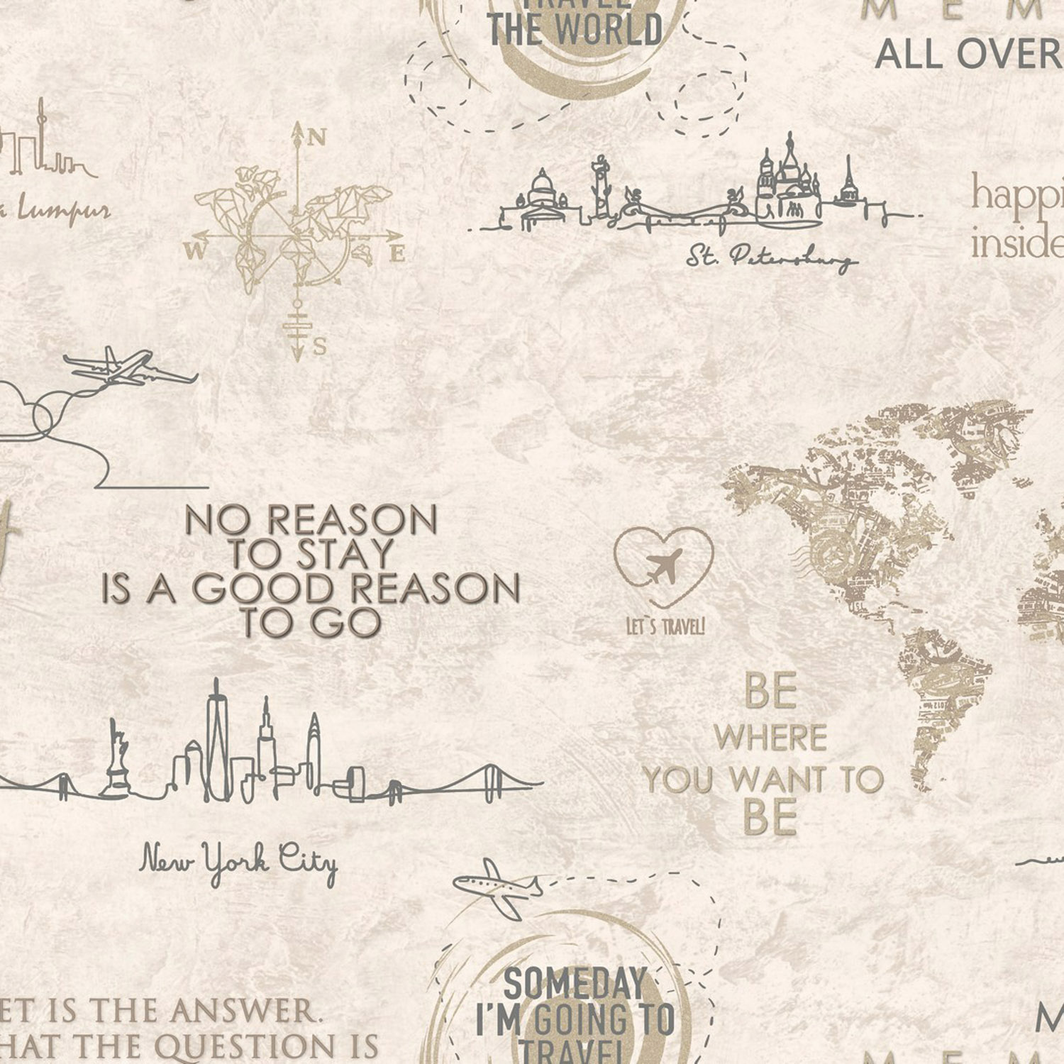На создание новой коллекции Le Tour ТМ Ateliero дизайнеров вдохновила тема путешествий. Что может быть лучше, чем сесть в самолет, отключить мобильный телефон и электронную почту, оставить за бортом списки неотложных дел, которые никогда не заканчиваются и отправиться навстречу приключениям? Ничто так не заряжает энергией и положительными эмоциями как смена привычных «декораций» на новые – новые места, новые страны, новые знакомства, новые открытия. Легкая тематическая коллекция Le Tour наполнит ваш дом приятными воспоминаниями о прошлых путешествиях и вдохновит на новые! Коллаж из мотивирующих надписей и контурных силуэтов городов собирается в стильный, неперегруженный дизайн, поэтому мотивы можно использовать на все четыре стены. Актуальные фоны-компаньоны с текстурой штукатурки послужат отличной базой для оформления любого помещения в разных стилистических решениях. Серия представлена коммерческими колористиками серо-бежевой гаммы. Особо стоит отметить эффектную графитовую колористику, которая идеально справиться с задачей зонирования пространства и создания акцентных стен. Коллекция Le Tour универсальна, будет отлично смотреться в любом помещении – актуально в кухне-гостиной, стильно в спальне, модно в комнате подростка, креативно в прихожей. Серия прекрасно сочетается с интерьерными аксессуарами из дерева, стекла или металла. Le Tour - это отличный способ продемонстрировать свою любовь к путешествиям и исследованиям, добавив изюминку декору жилья. Мечтайте, дерзайте, путешествуйте и мир засияет новыми красками!