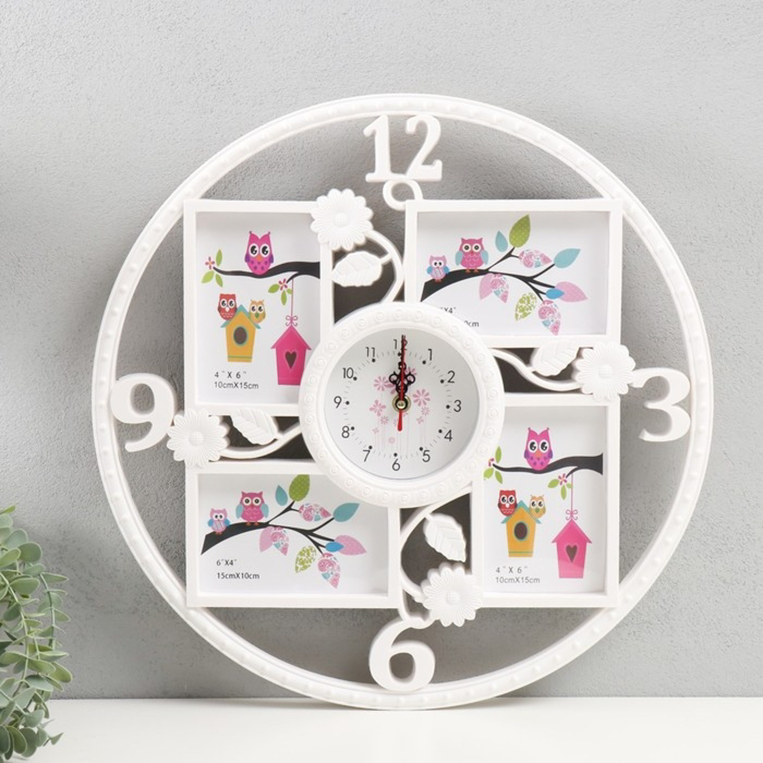 Фоторамка коллаж с часами на 4 фото 10х15 см, 46х46 см, 10115286