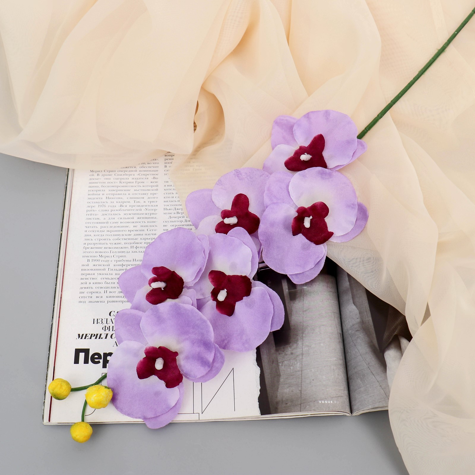 Цветок искусственный "Орхидея" 9*60 см, белая с сиреневым 3534214