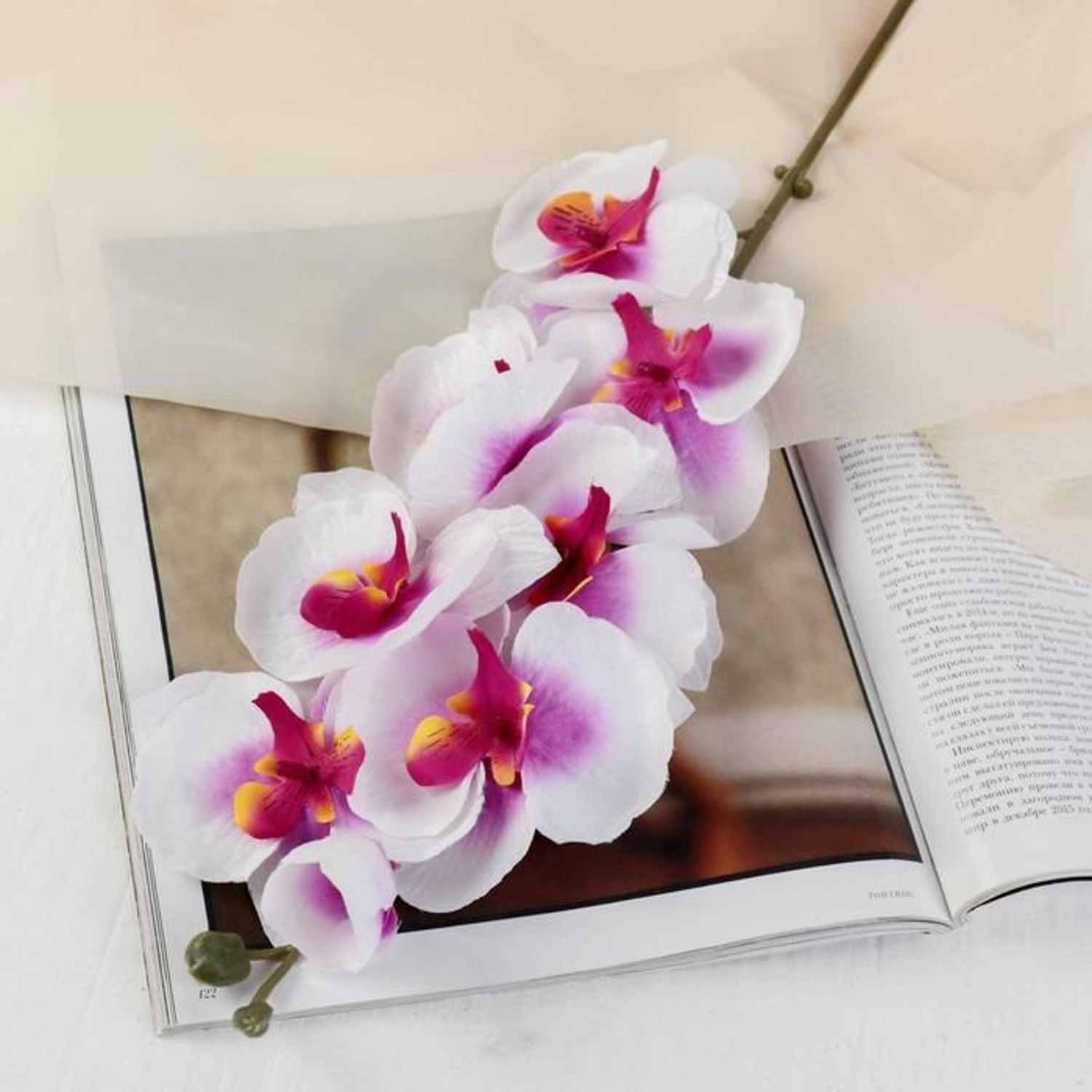 Цветы искусственные "Орхидея молди" 9*66 см, бело-фиолетовая 2578240