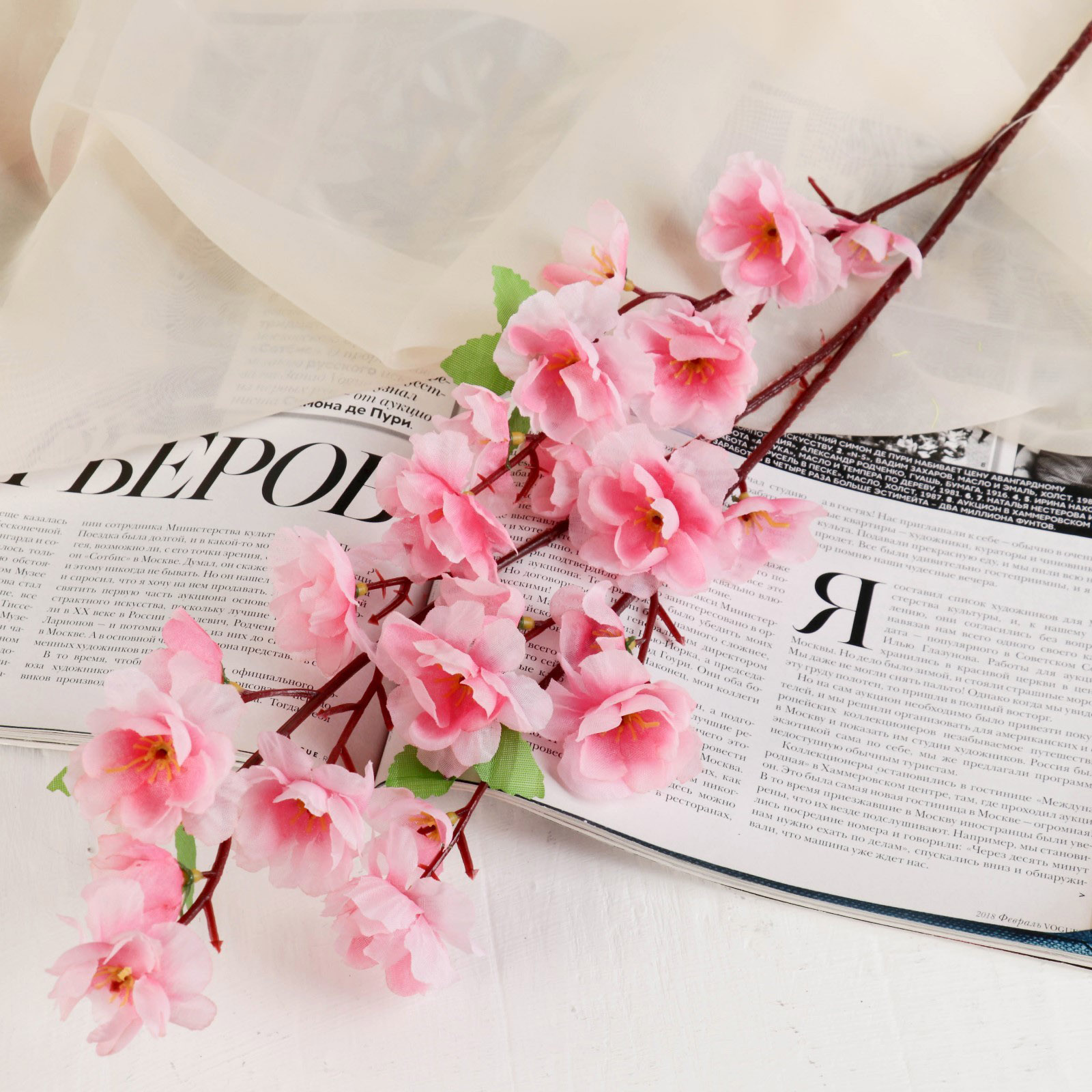 Цветы искусственные сакура нежность 65 см d-4,5 см розовый 701090