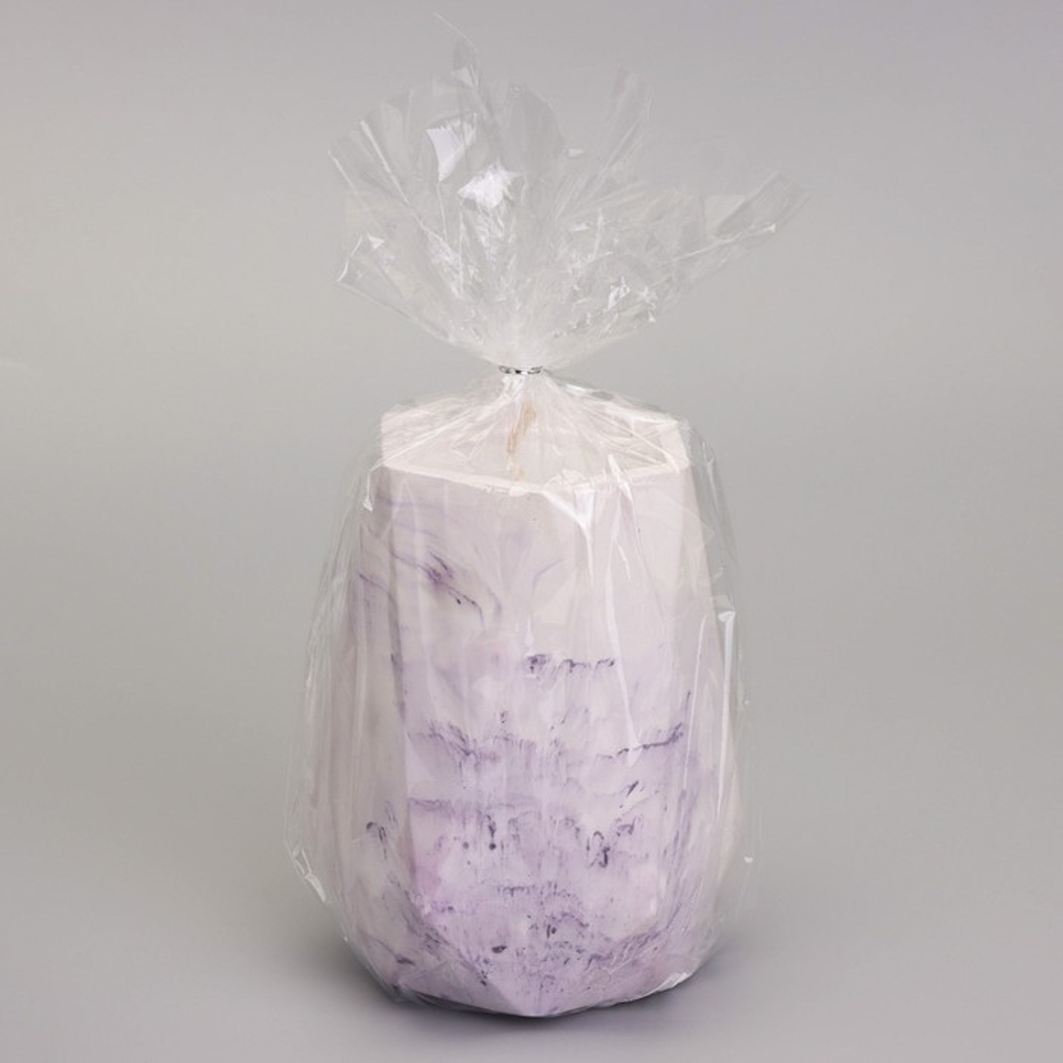 Свеча "Ваза. Мрамор" в подсвечнике из гипса с гранями,7х10см,мрамор с фиолетовыми полосками 10059812