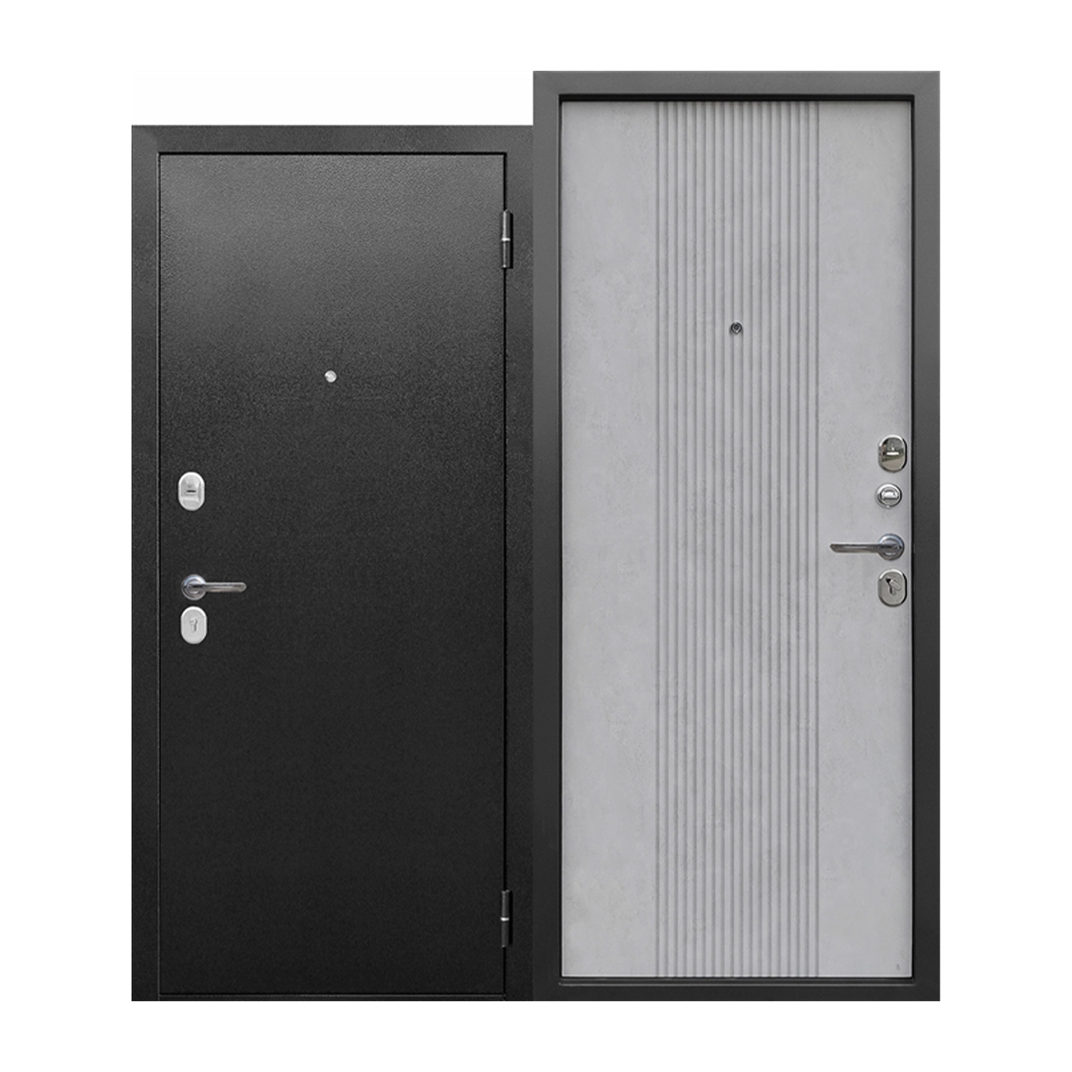 Дверное полотно, дверная коробка, замок основной, замок дополнительный, петли - 2 шт., противосъемны |