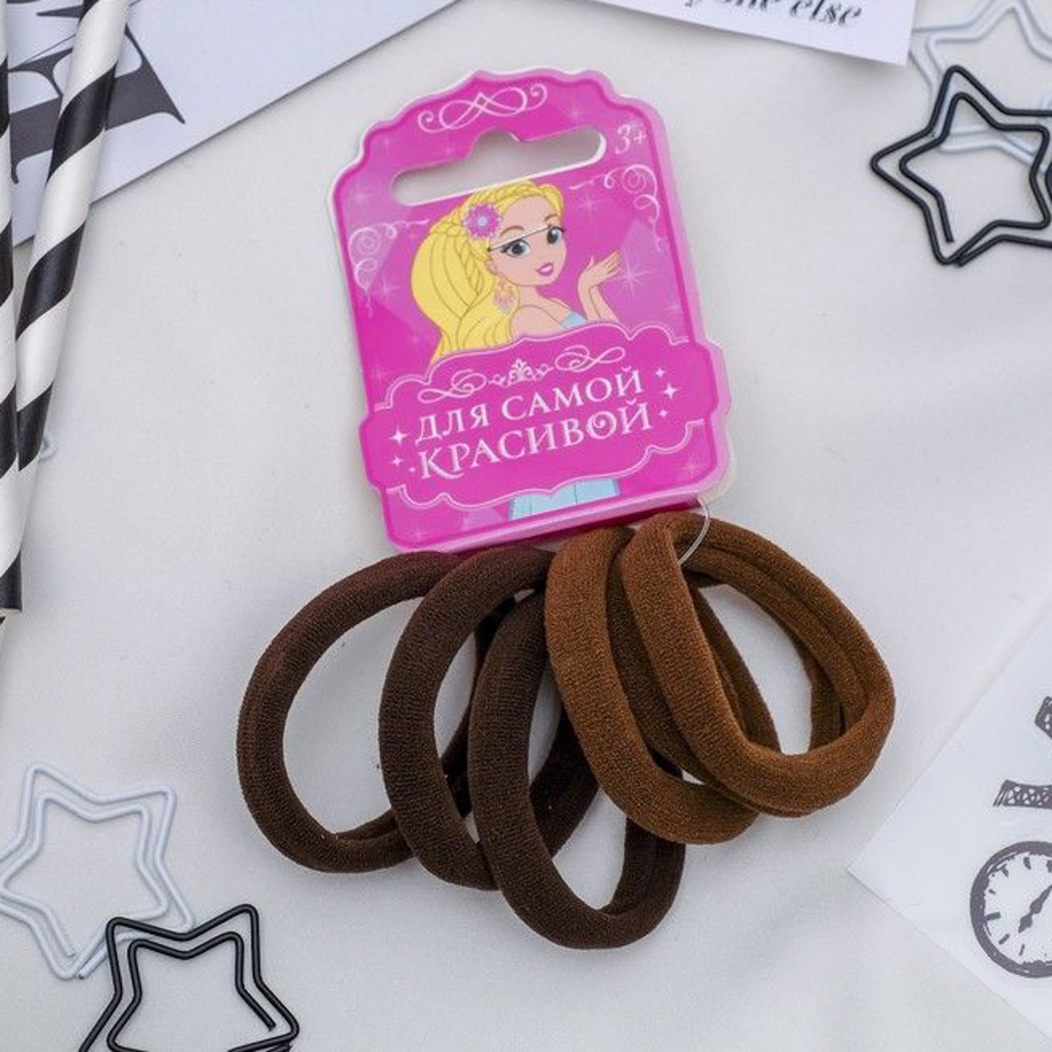 Резинка для волос "Махрушка" (набор 6шт) коричневая