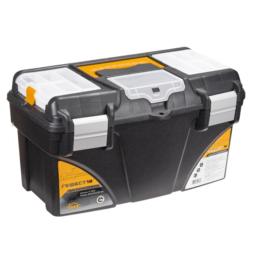 яяяЯщик д/инструмента пластм. "Гефест 18" с секциями, металл.замки 430х235x250мм М2942 ("М-Пл.")*1/6