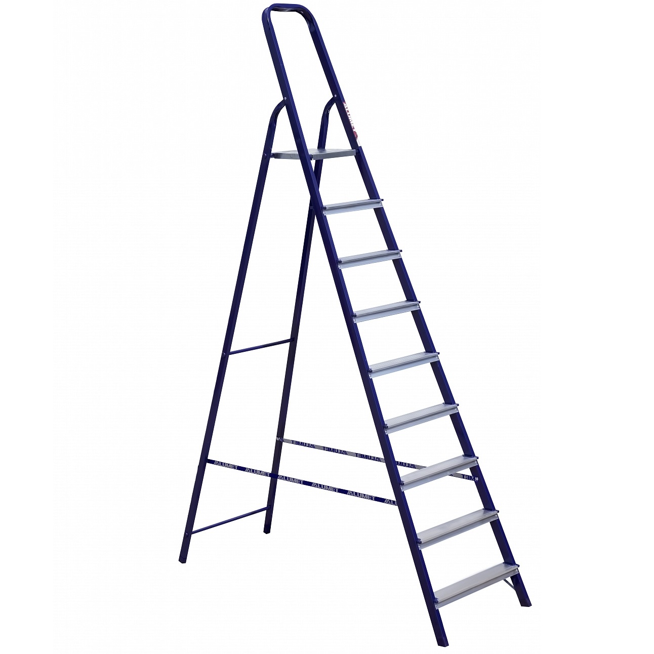 яяяСтремянка 9 ступеней "Алюмет" М8409 Комбин.:стойки-сталь,ступ.-алюм. выс.верхн. пл.1,87м *1