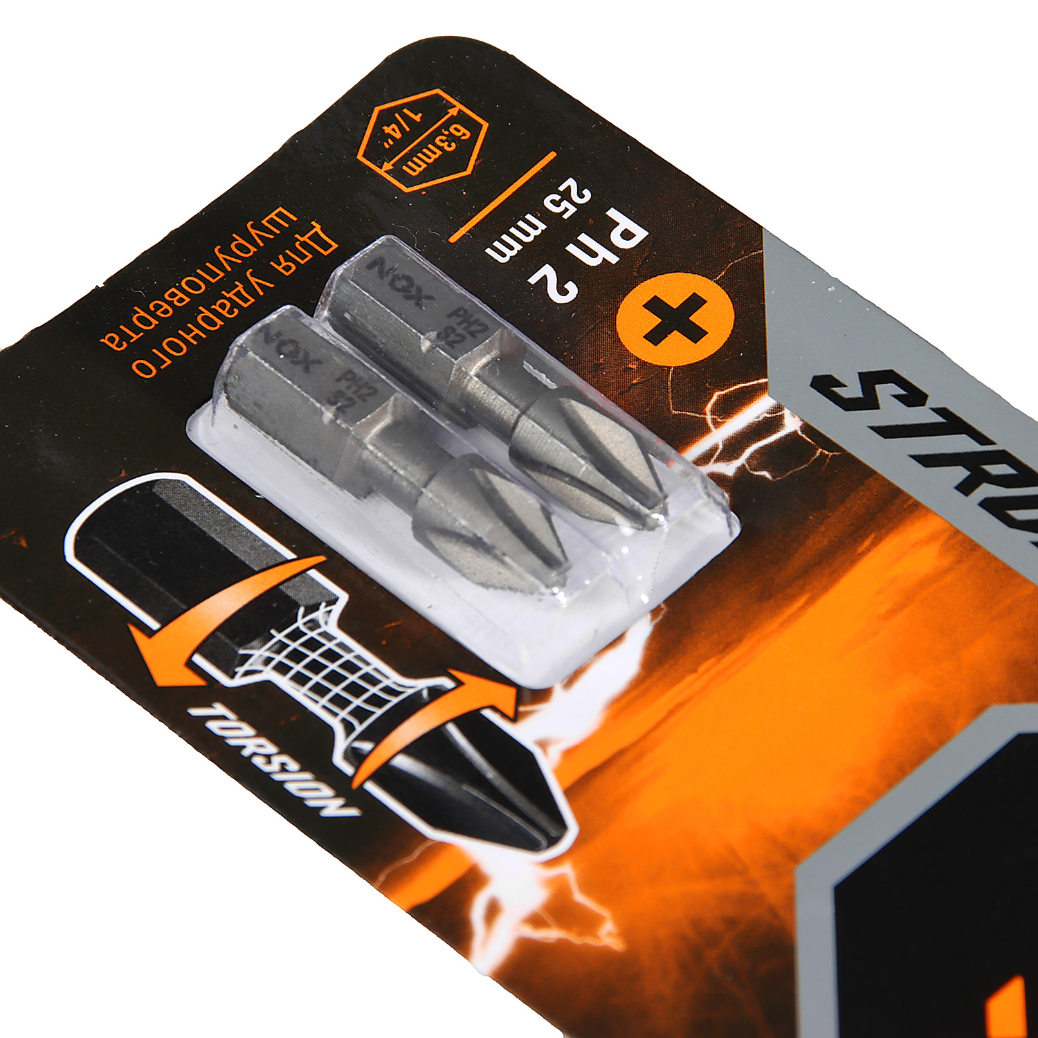 Бита крестовая PH2х 25мм (2шт) торсионная S2 хвостовик1/4"С STRONG арт.336225-2 NOX *10/50/100