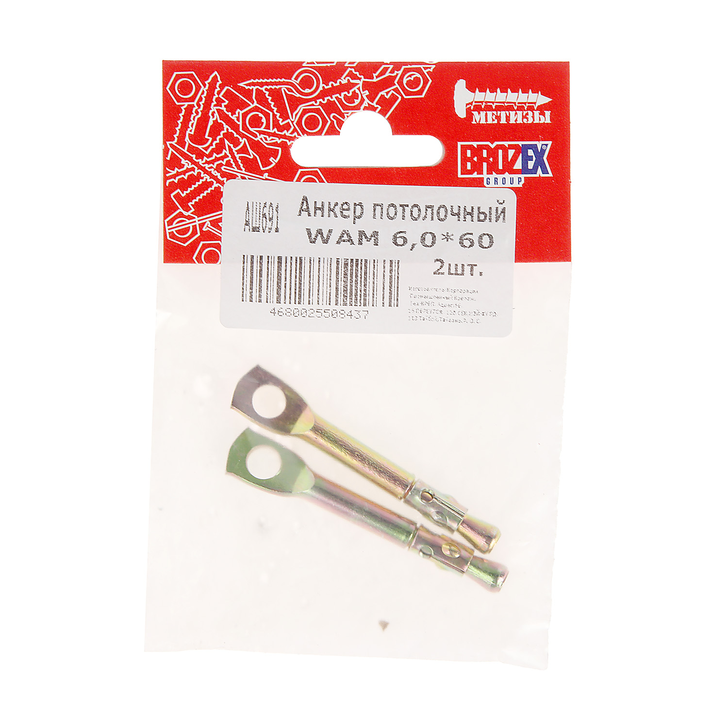Анкер потолочный 6х60  WAM (2шт) пакет BROZEX  *10/100