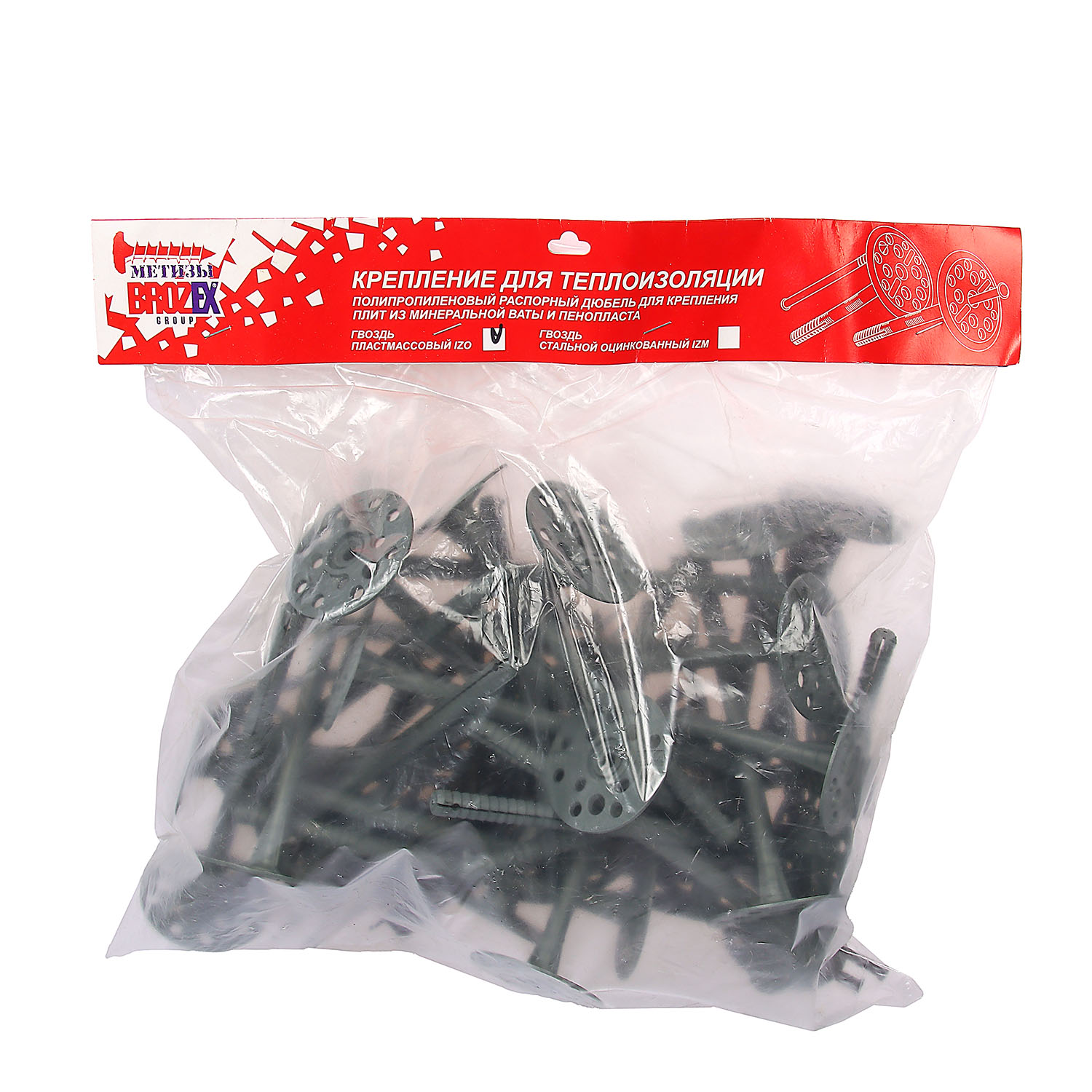 Дюбель 10х180 мм для теплоизоляции BROZEX, пласт. гвоздь IZO, 30 шт.