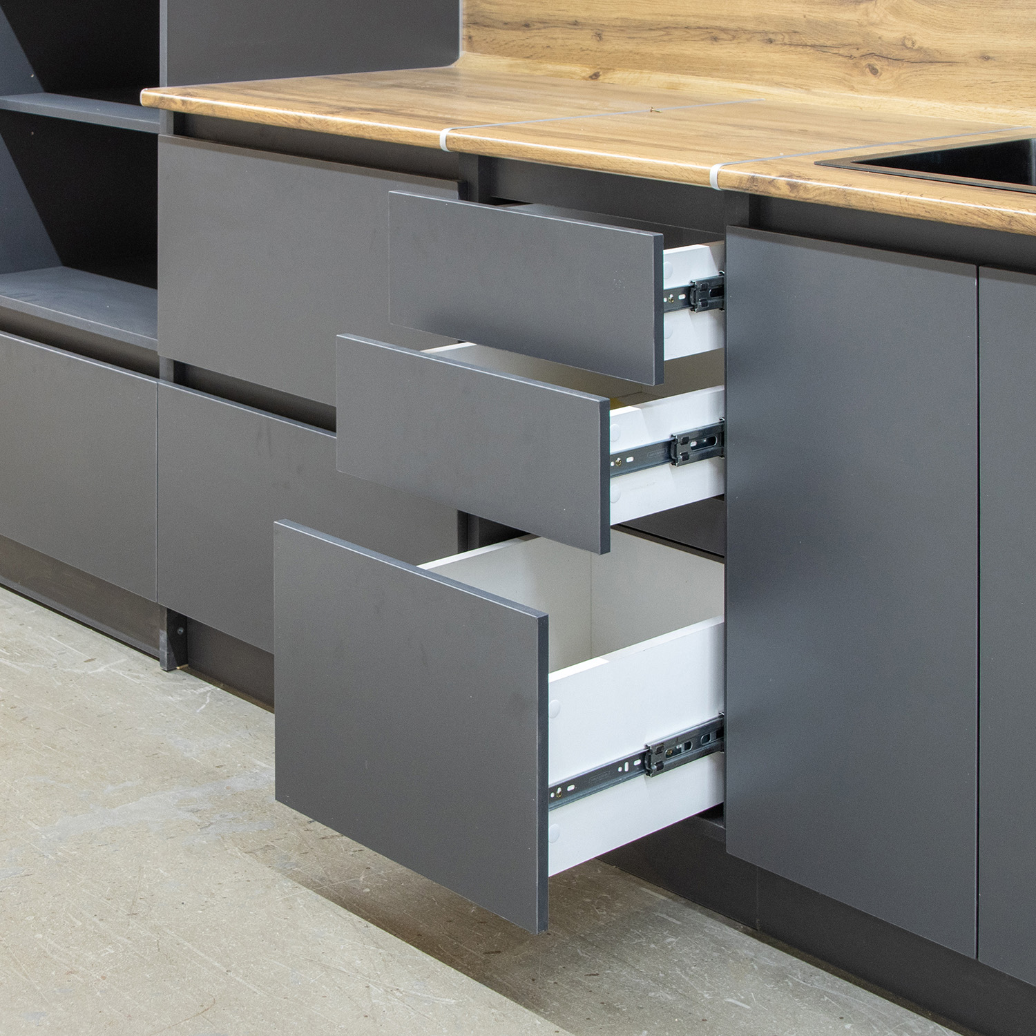 Без ручек, открывание нажатием