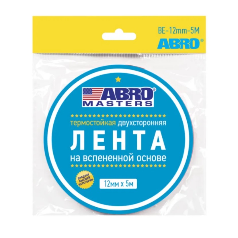 Лента клейкая двусторонняя вспененный ЭВЦ Термостойкая Черная 12мм х5м BE-12mm-5M-RE "ABRO" *1/900