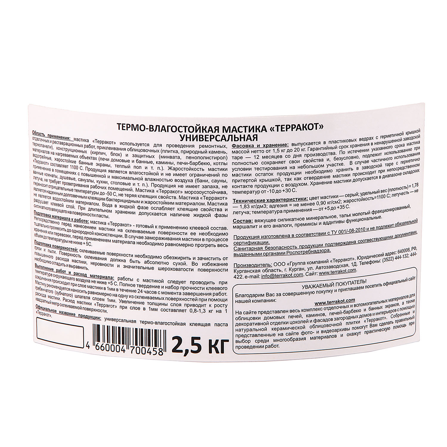 Мастика Терракот универсальная 2,5 кг *4/240