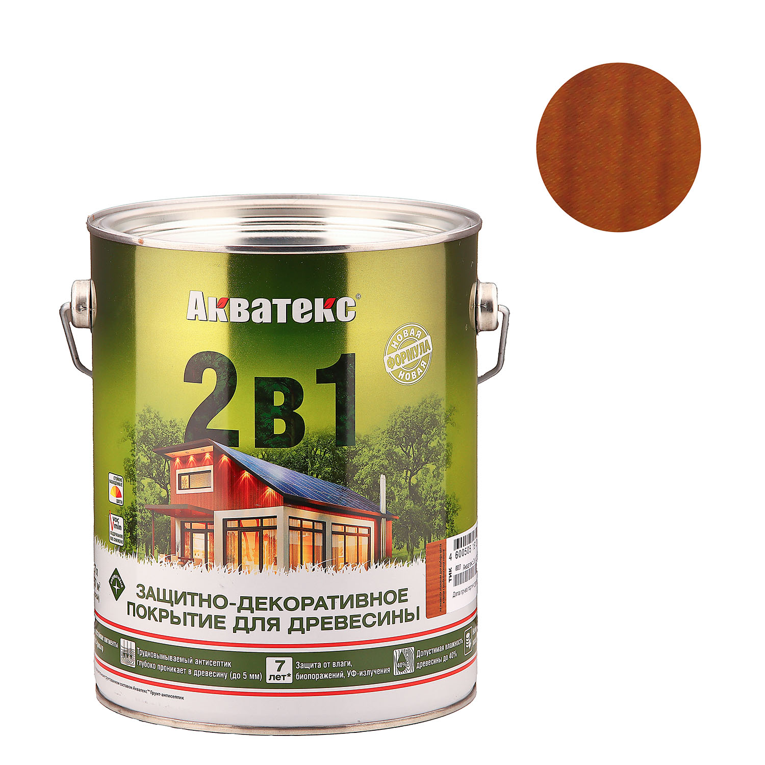 штАлкидное покрытие для дерева Акватекс 2 в 1 тик 2.7 л защищает поверхности от атмосферных воздействий, УФ-излучения, насекомых, гниения, деревоокрашивающих и плесневых грибов. Образует покрытие, имитирующее текстуру ценных пород дерева.