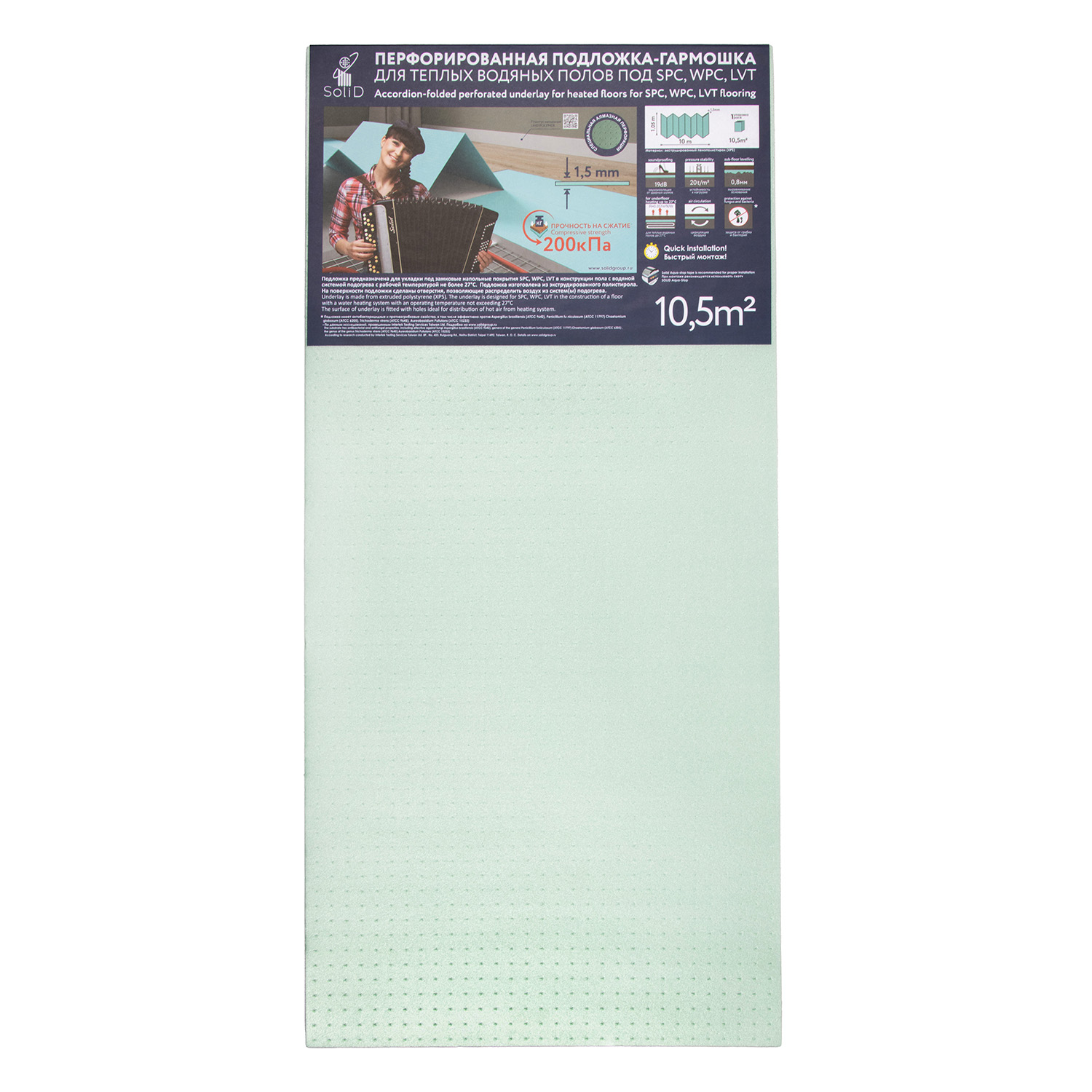 Подложка-гармошка под ламинат 1.05х10 м Солид, 10.5 м², 1.5 мм, перфорированная