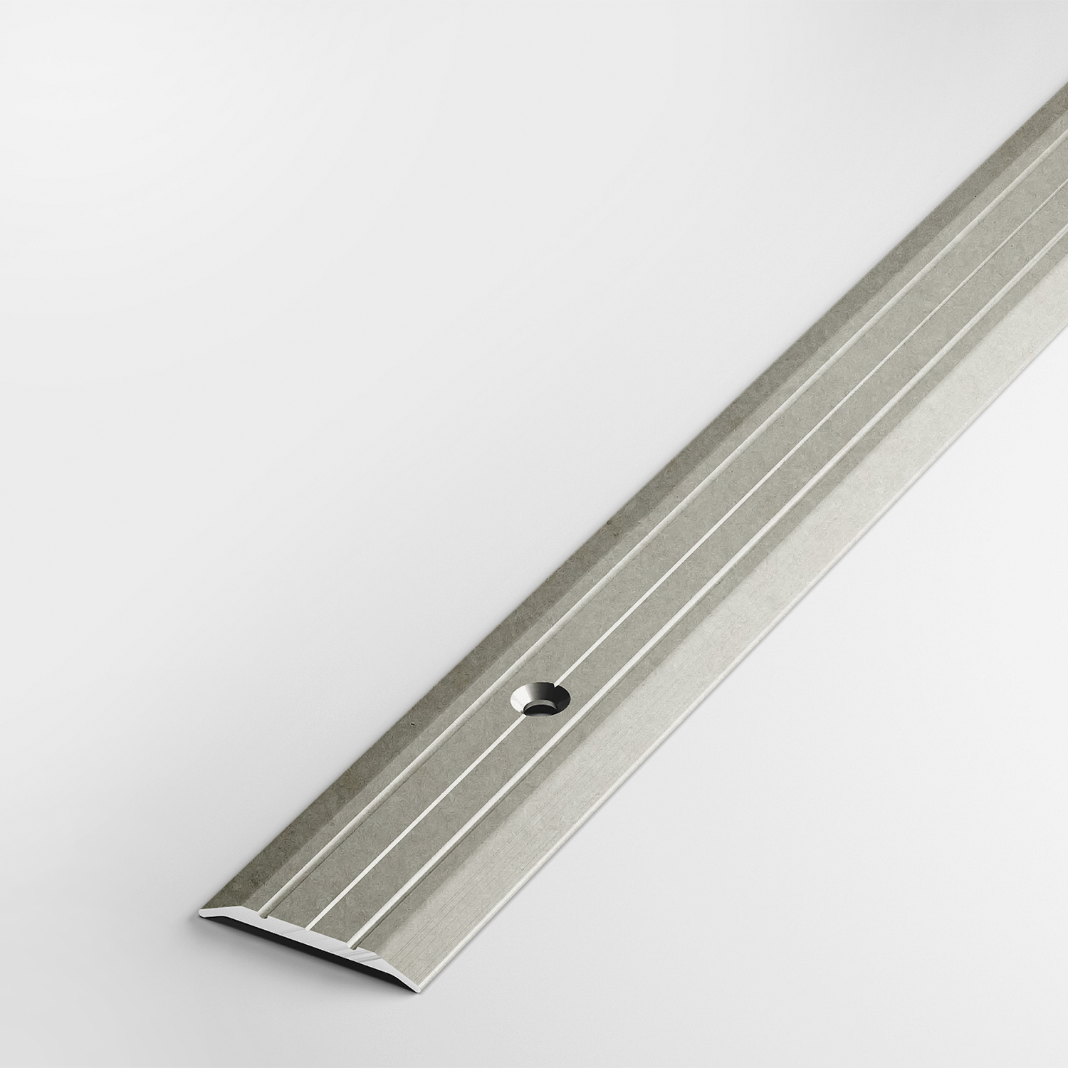 Порог-стык 25х900 мм Лука ПС 01, бетон айс 057 — плоский алюминиевый профиль с двумя желобками для оформления перехода между поверхностями, расположенными на одном уровне. Выполняет декоративную и защитную функции: придает полам завершенный вид, предохраняет кромку ламината, плитки, линолеума и прочих материалов от различных повреждений, не пропускает в стык грязь. Порог имеет открытое крепление. Поставляется в индивидуальной упаковке, с саморезами и дюбелями в комплекте.