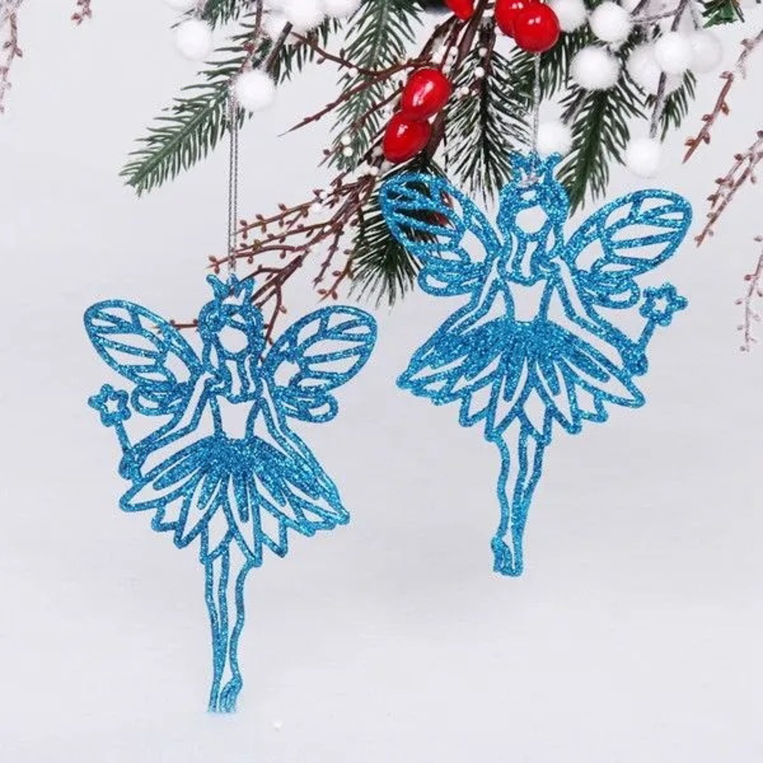 Подвески в блестках "Снежная фея" 14 см (набор 2шт), синий
