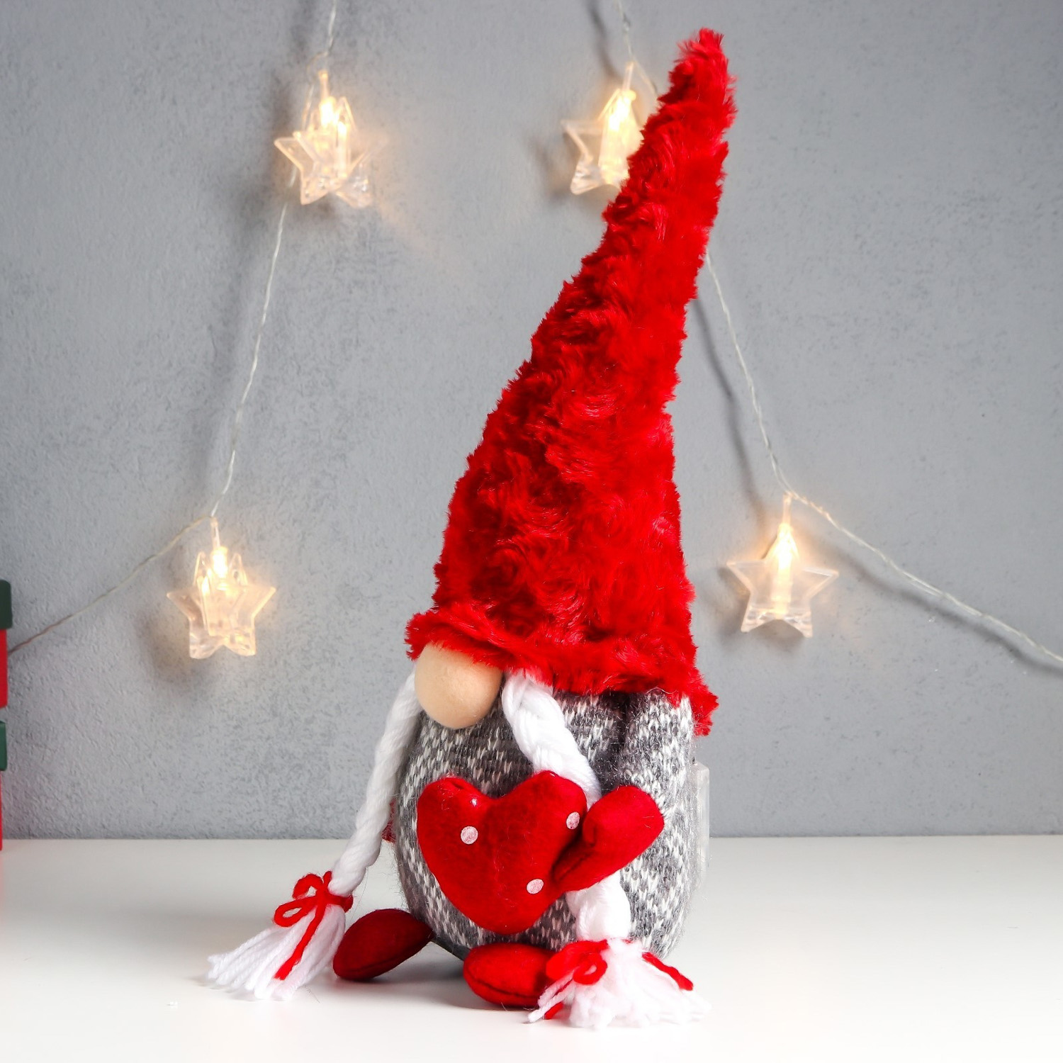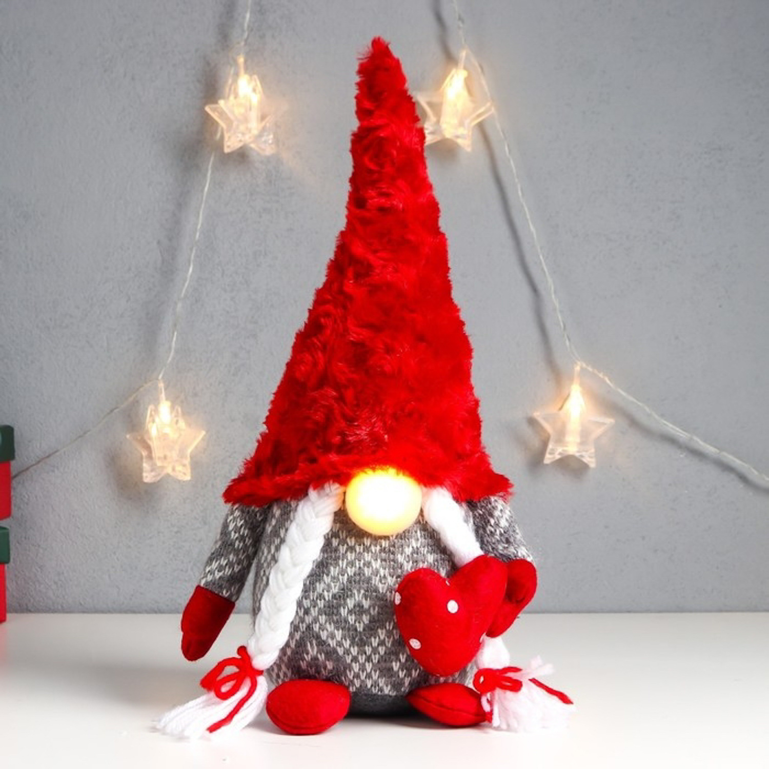 Кукла интерьерная свет "Бабусечка в с сердечком в горошек, меховой колпак" 35х14х14 см 7575281