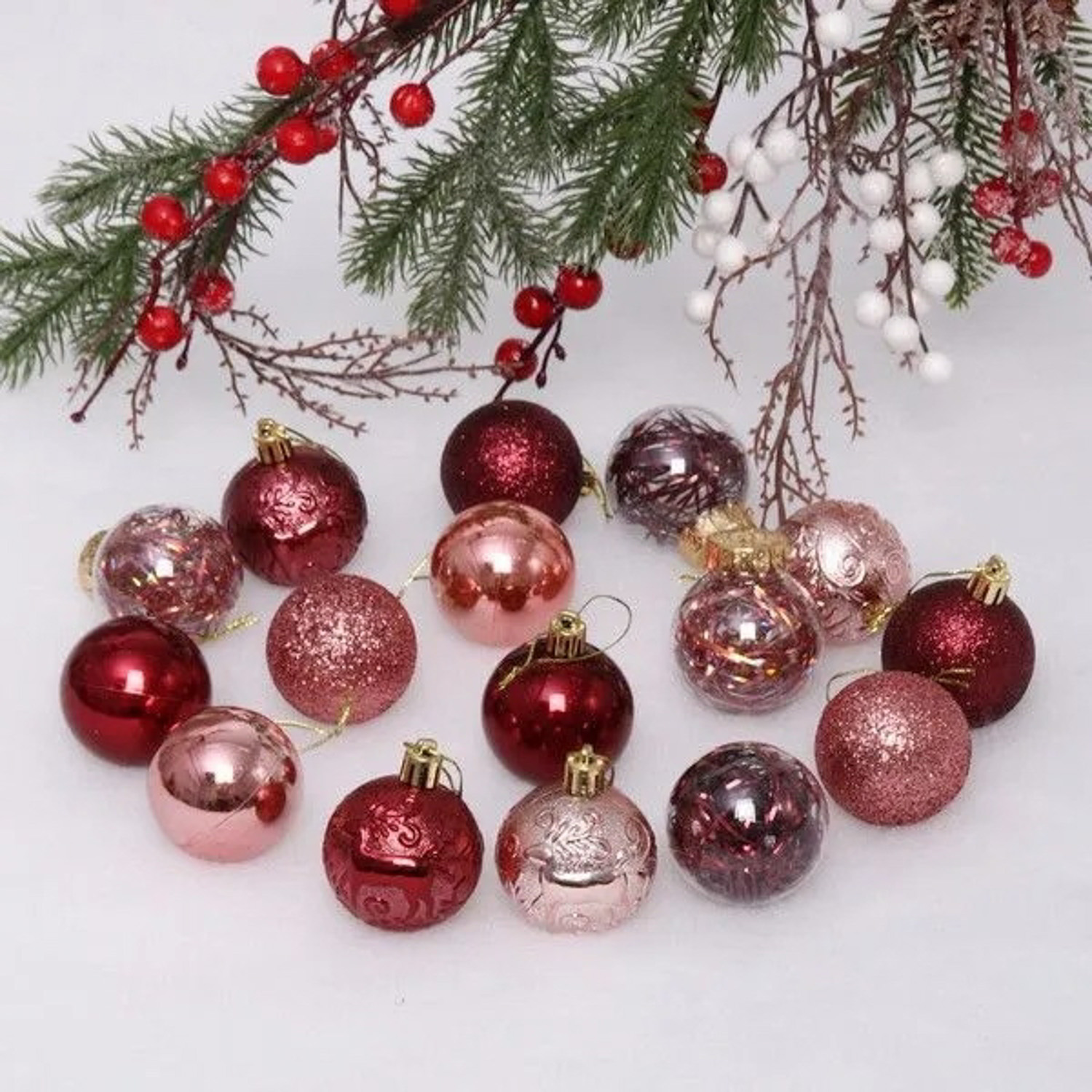 Набор шаров "Волшебный вальс" 5 см (16 предметов), рубин/роз.золото