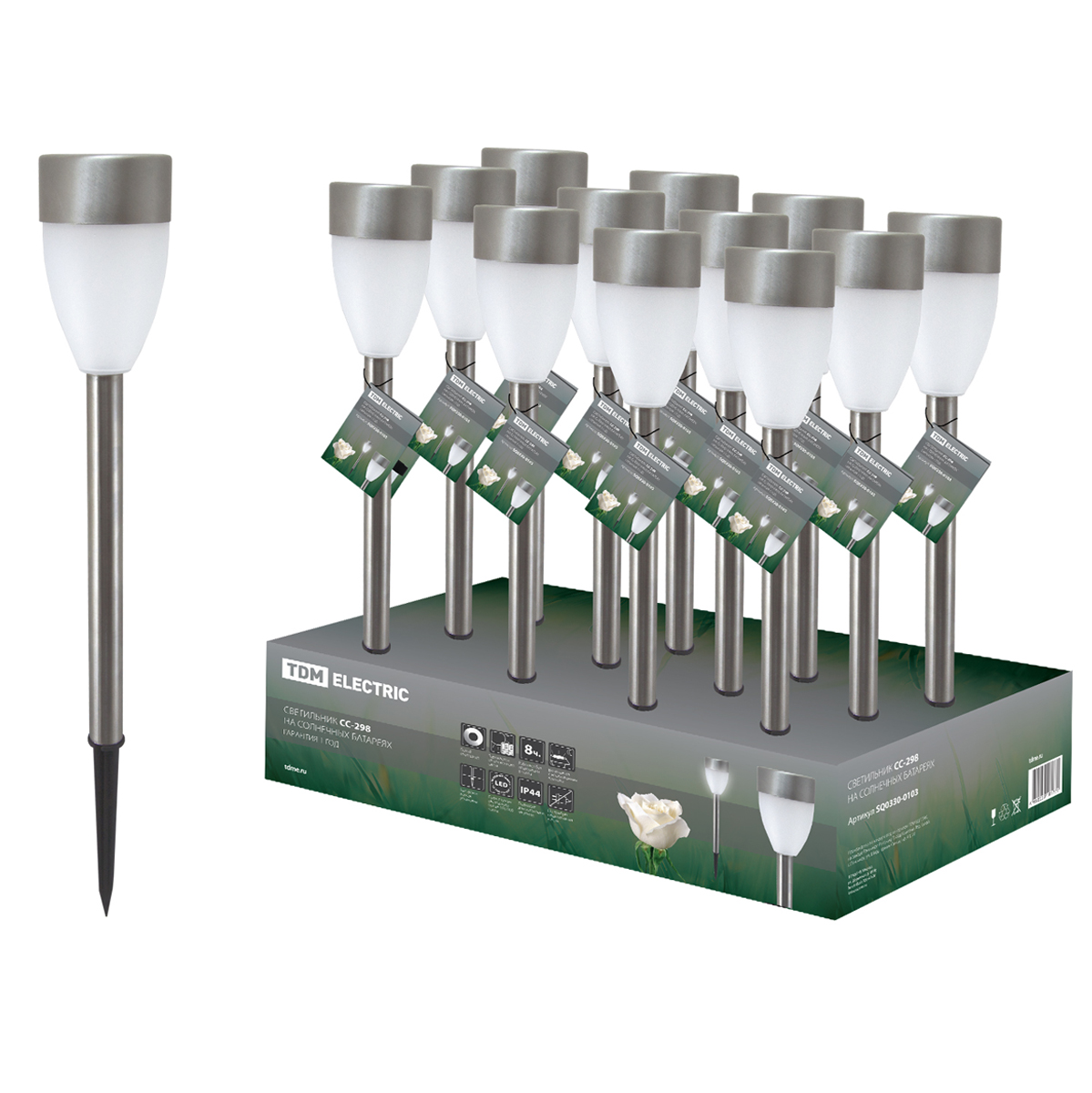 Светильник садовый на солнч. батарее СС-298 5,5х37см TDM SQ0330-0103 *1/24