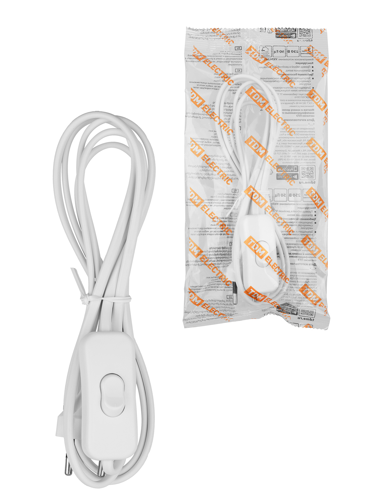 Шнур с выкл. и вилкой ШВВП 2х0,5мм2 1,8м бел. TDM SQ1305-1002 *1/180