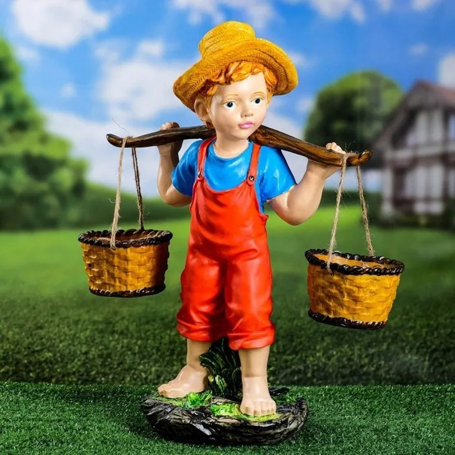 Садовая фигура "Мальчик с коромыслом" 48х40х19см 7640154