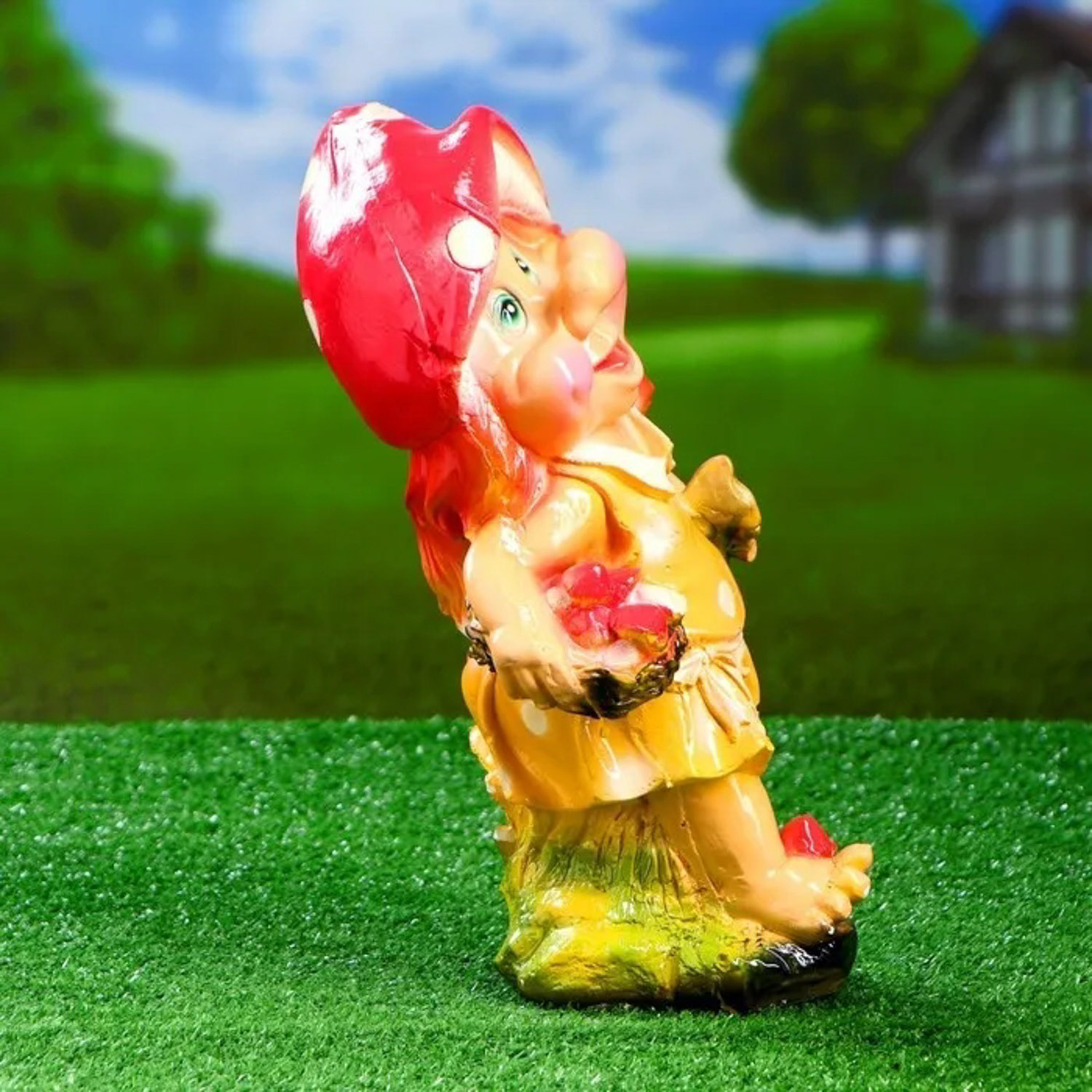 Садовая фигура "Гномиха с мухоморами и лопатой" 34х19см 3467701