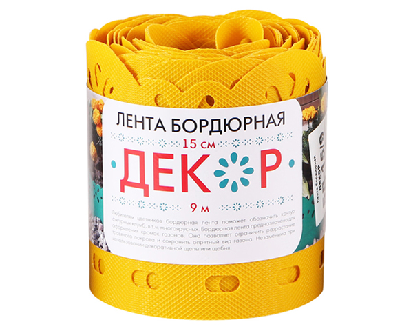 Бордюрная лента Садовая для грядок, клумб "Декор" пласт. выс.15см дл.9м Желтый БД-15/9 (Протэкт) *1