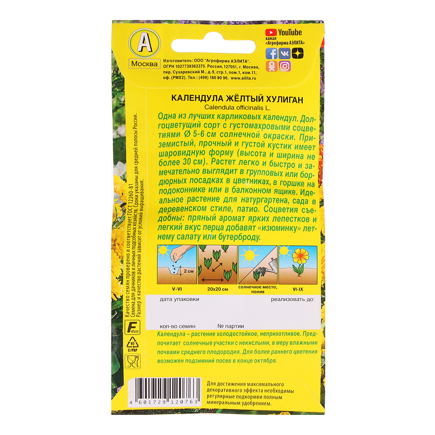 Семена Календула Желтый хулиган 0,3 гр Аэлита цв *10/200