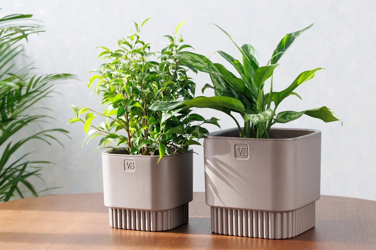 Кашпо пластм. "Бостон" 5,5л 192х192мм h185мм со вставкой Шоколад АМБ-5,5-04 ("VipSet") *1/6