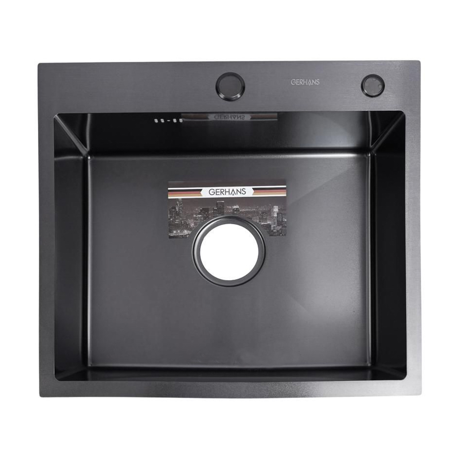 Мойка нерж. врезная 600х500х220мм графит, толщ.1мм, с сифоном, отв. под смеситель, GERHANS *1/5
