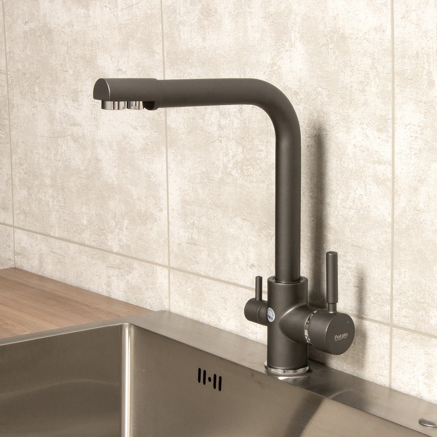 Смеситель для кухни Potato P4498-19, высокий излив, с выходом для питьевой воды