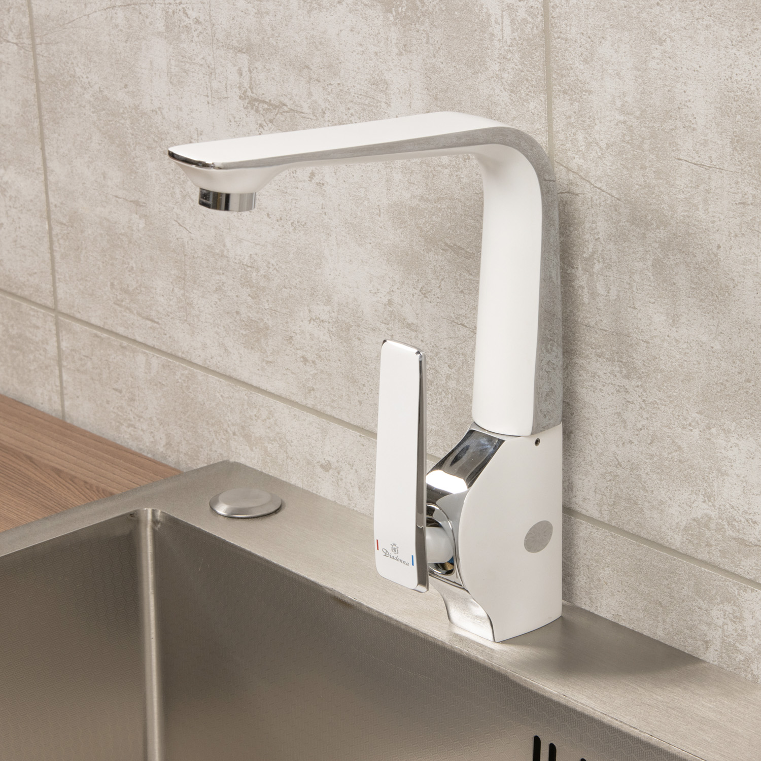 Смеситель для кухни Diadonna D87-443137W белый с хромом, высокий излив *1/10