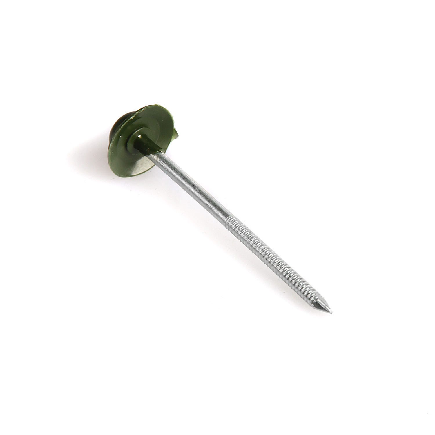 Размеры (длина) гвоздей – 75 мм. Изготовлены из долговечных и устойчивых к коррозии и атмосферным факторам материалов – оцинкованная сталь и шляпка из окрашенного полимера со светостабилизатором.