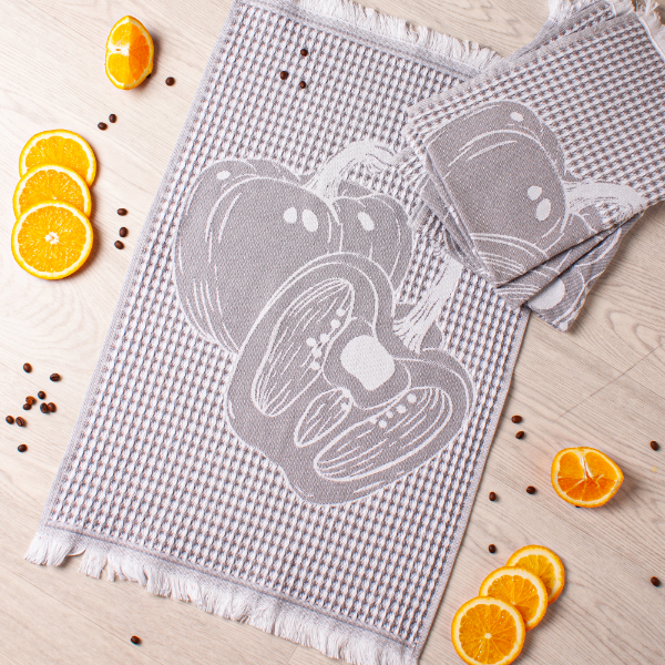 Полотенце вафельное жаккардовое 40*60см Перцы серый Casa Conforte *4