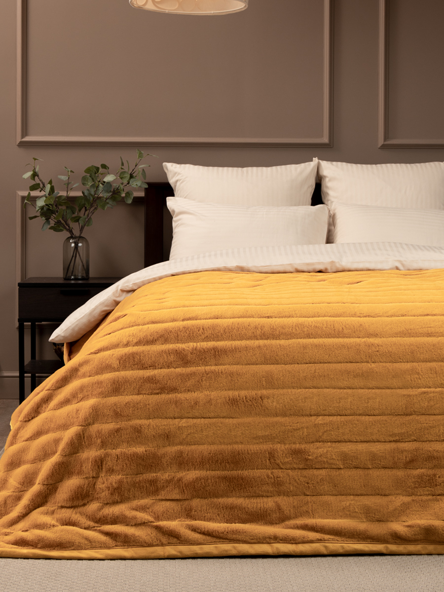 Плед 200*220см искусственный мех Кролик Полосы желтый TCH KS Y2 014/2022 NC Absolute *1