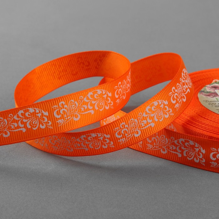 Лента репсовая 15мм*25±1ярд узоры белый JF-25 оранжевый АУ 3019882