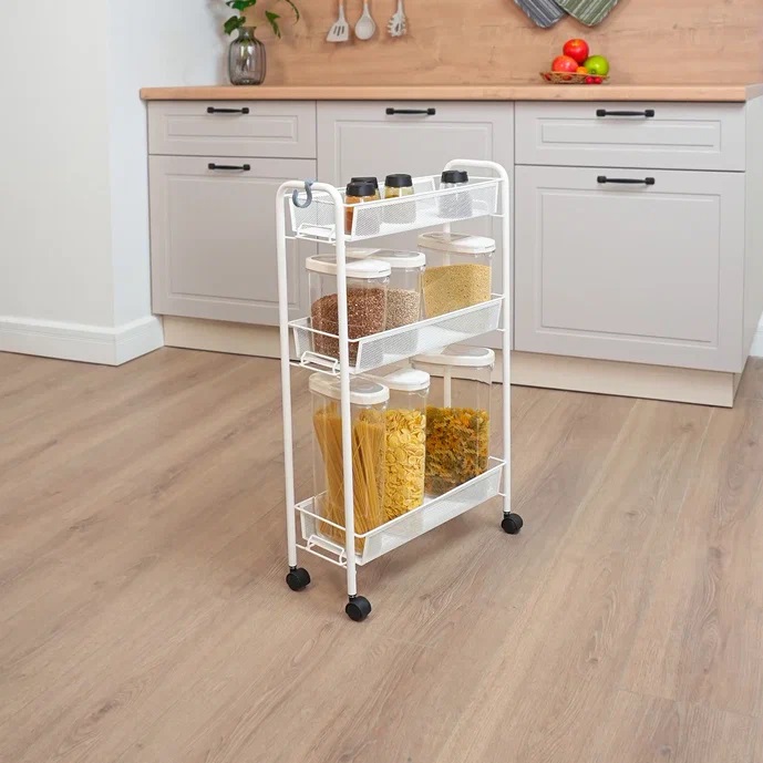 Этажерка металл. "Ладья1К" 3-х ур.: 3 корз., в.0,76м,ш.0,44,гл.0,17м, на колес. Белая Э321Б "ЗМИ" *1