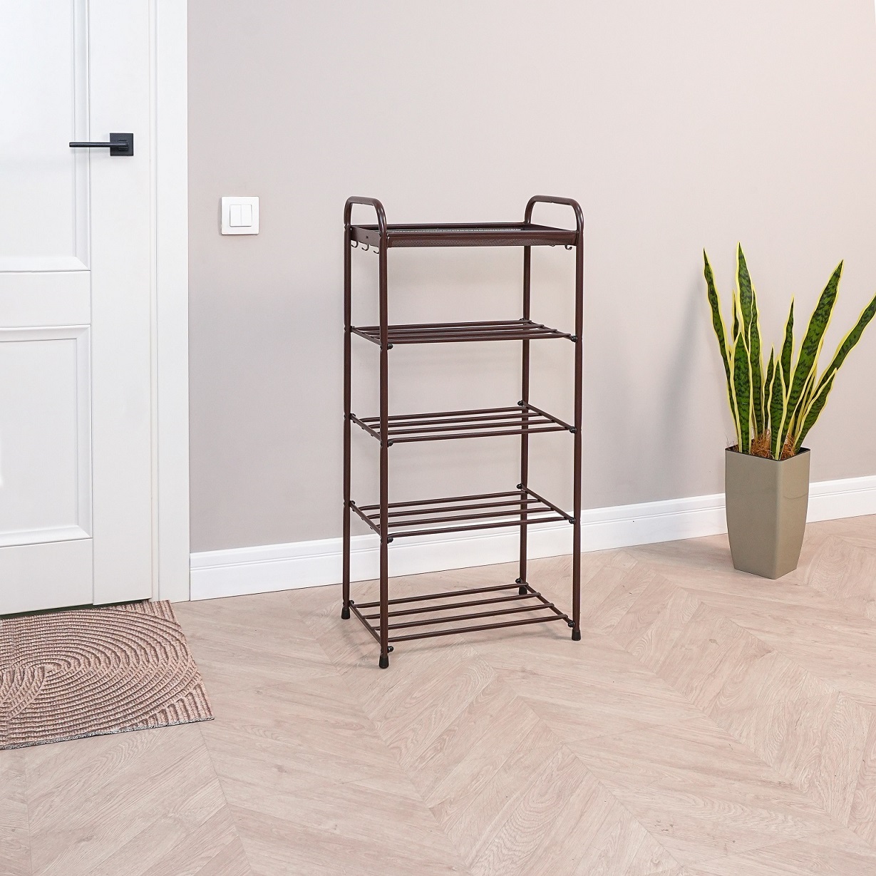 Этажерка "обувница" металл. "Альфа 15" 5полок, ш.0,46м, в.0,95м, гл.0,33м Коричн.ПДОА 15КОР "ЗМИ"*1