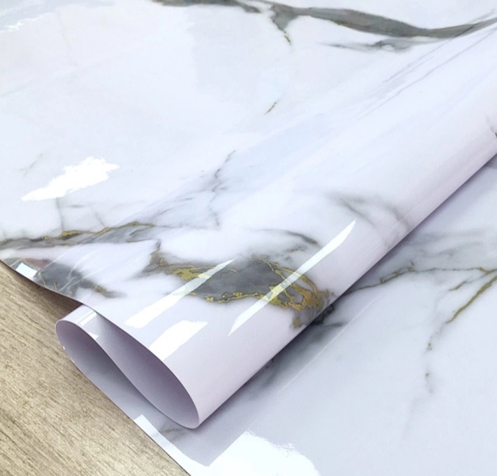 яяяКлеёнка без основы "термо" гладкая толщ.0,65мм, шир 0,8м "Мрамор б-сер."GW-52247"ТермоКлеёнка"*20