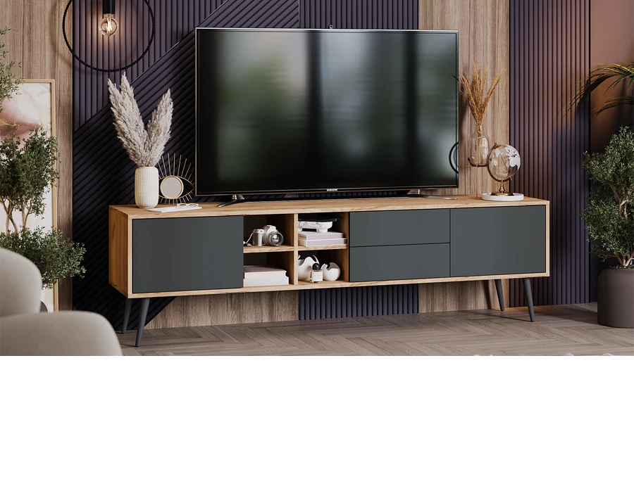 Тумба для ТВ 1802*407*520 тип5 с опорами Дуб Крафт золотой/Антрацит Серый ТриЯ*1