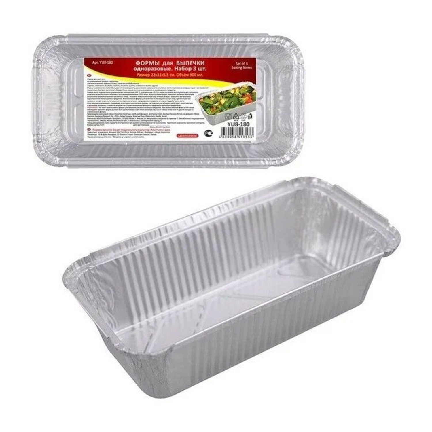 яяяФормы для выпечки 900мл 3шт 22*11*5,5см YU8-180