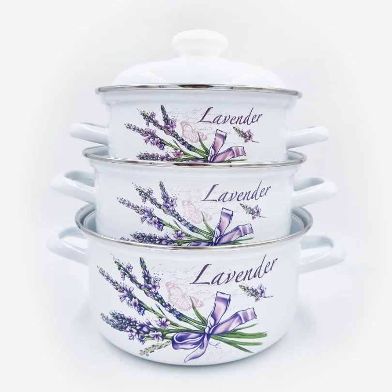 Набор кастрюль эмалированных: 1,5л+2,0л+3,0л рис. "Лаванда" С-124АП2/4 "Лысьвенские ЭМАЛИ" *1
