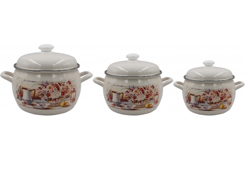 Набор кастрюль эмалированных: 2,0л+3,5л+5,0л рис."Летний этюд" С-207АП2/4Жм "Лысьвенские ЭМАЛИ" *1