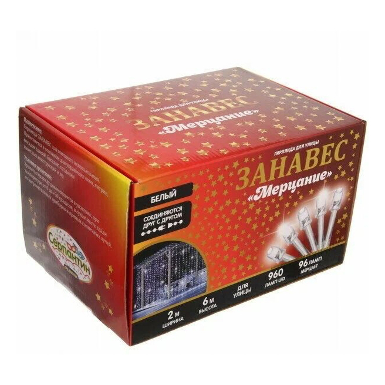 Гирлянда для улицы ЗАНАВЕС "Мерцание" ш2.0* в6.0 м 960 ламп LED, проз.пров,1 реж.,IP-54, Белый *1/20