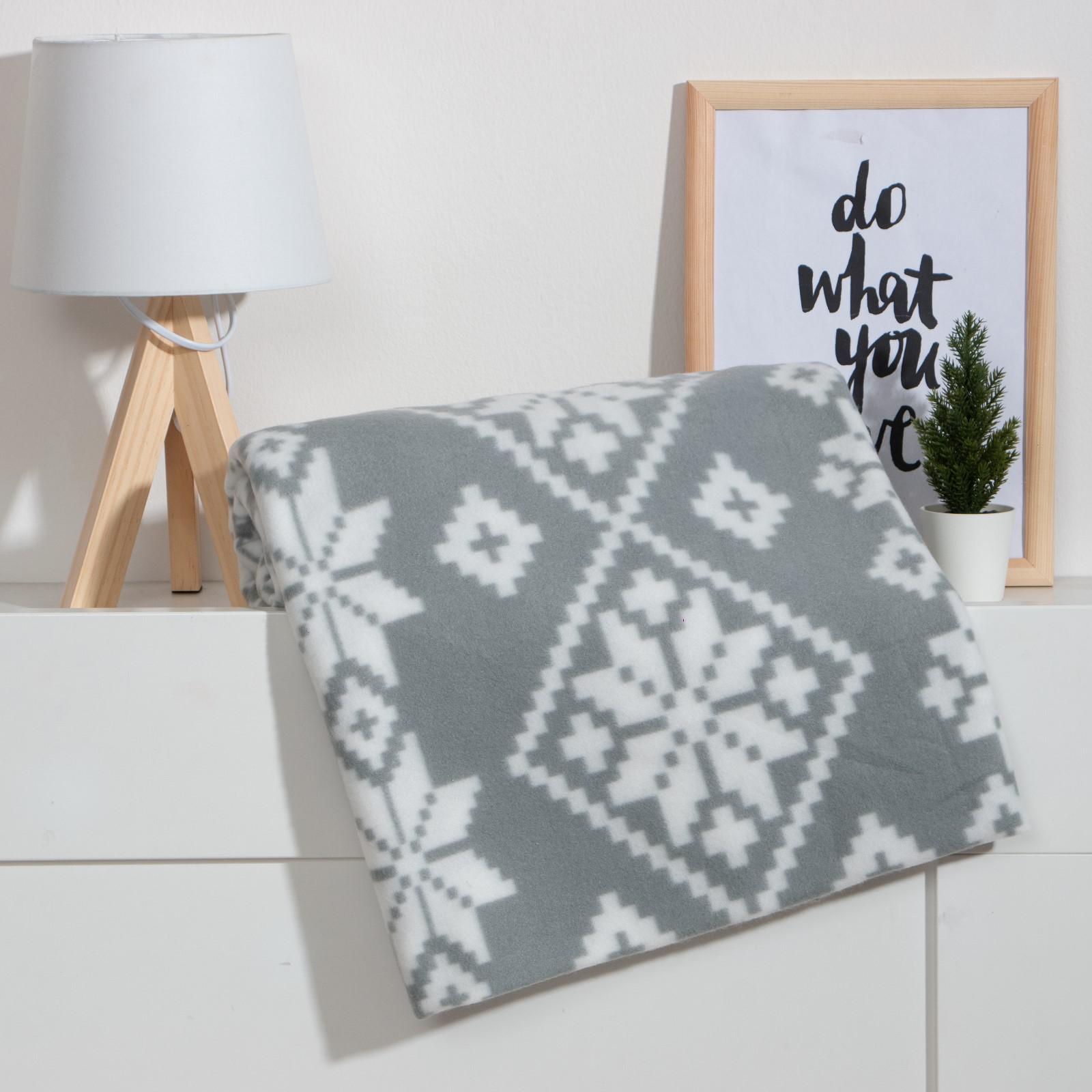 Плед 130*150см флисовый Зимние узоры серый Эконоиь и Я *1