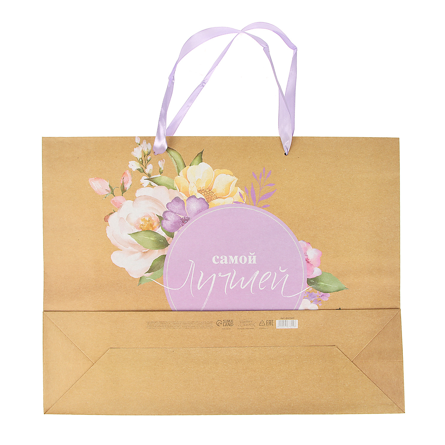 Пакет крафтовый горизонтальный «Самой Лучшей», L 40 × 31 × 9 см   4567809