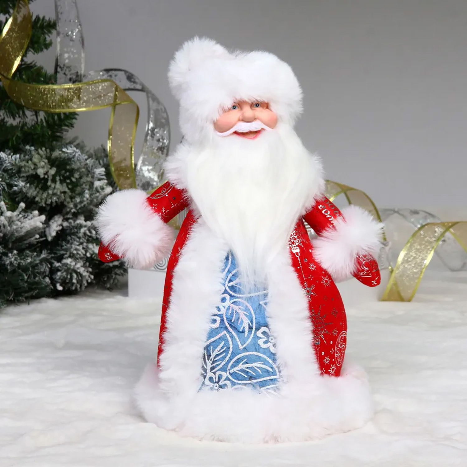 Дед Мороз для подарков и конфет "Кому подарки?" 30 см (красная шубка)