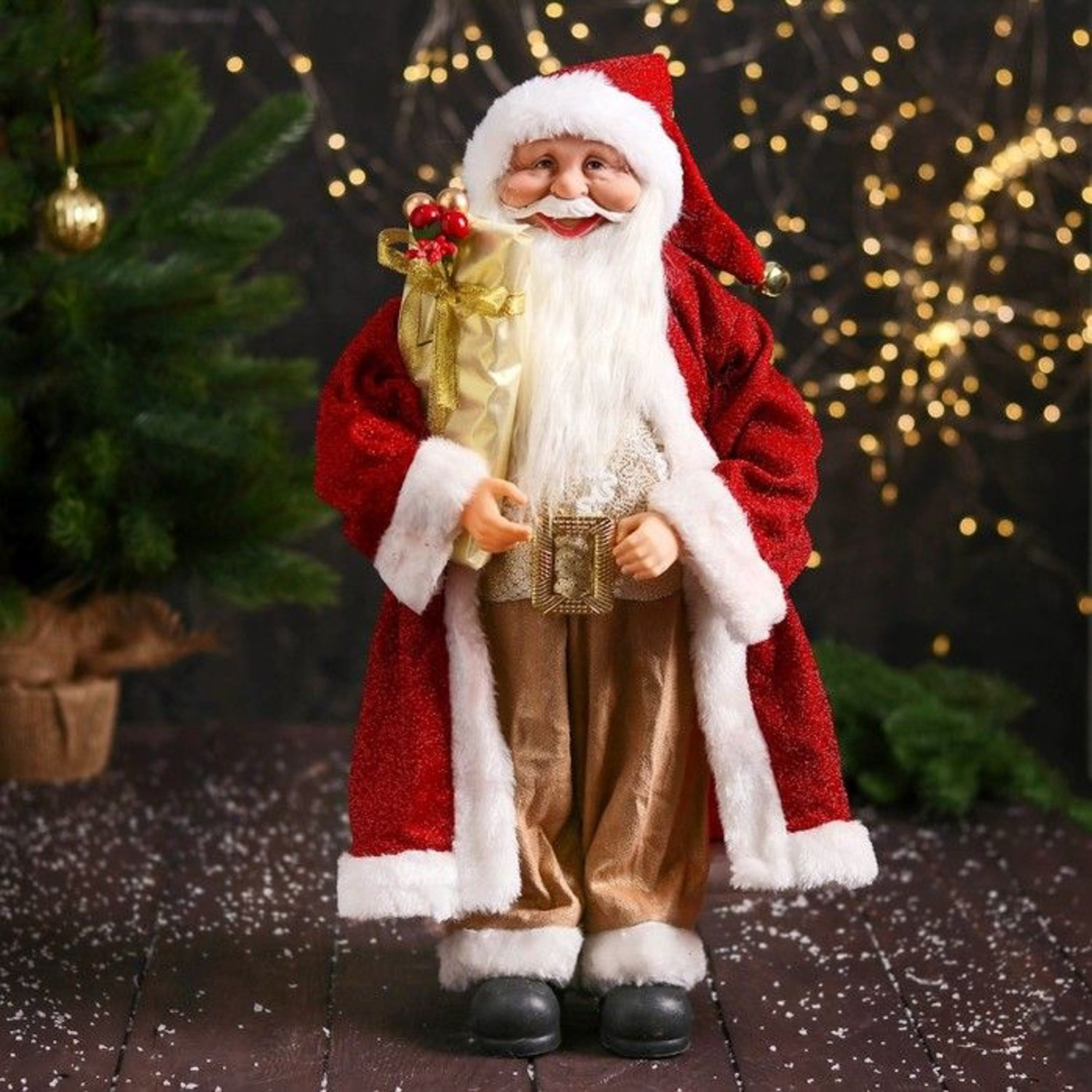 Дед Мороз "В колпачке, подарком и ягодами" 46 см, красный 7856764