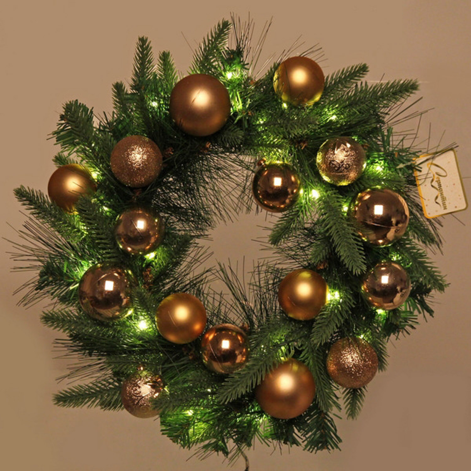Венок хвойный "Сказочное чудо" d-40 см, ПВХ, литой ПВХ, Шампань